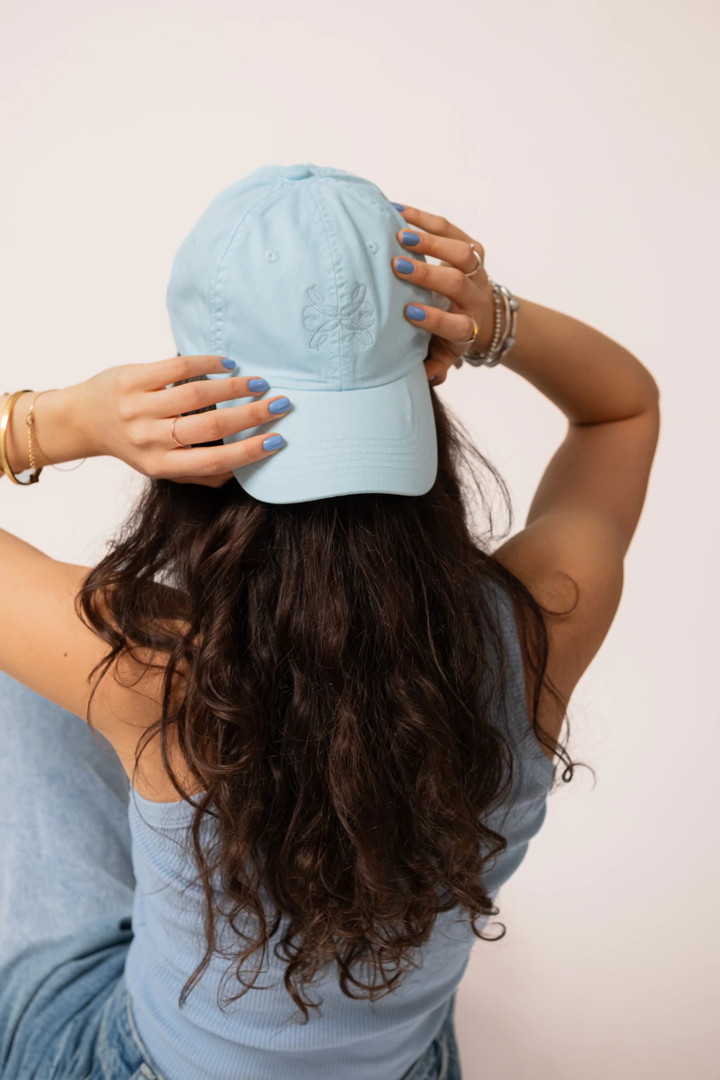 Boné Lavínia é o acessório mais Coolest e atemporal que você terá para dar o stylist final em seu look! Feito em sarja destonada Candy Cotton (azul claro, super tendência), dando esse ar cool em modelo dad hat com bordado frontal do nosso desenho de laço na cor Candy Cottont (azul claro, super tendência).